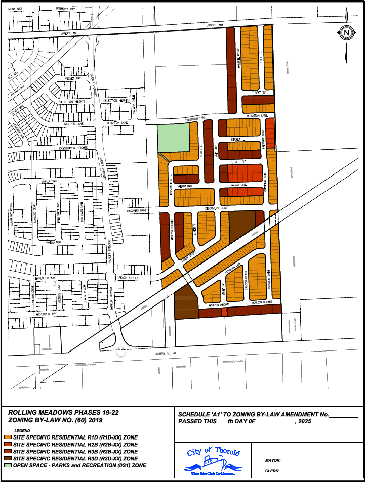 A Zoning By-law Amendment Application has been submitted to rezone the Subject Lands, Phases 19-22, in the Rolling Meadows Secondary Plan area. In July 2023, the City approved revisions to the Draft Plan of Subdivision (previously phases 17-21), City File No. D12-04-2022, which was appealed by Hydro One Networks Inc. regarding encroachments into existing Hydro One easement lands. OLT Decisions 23-000765 and 23-001131 resulted in a revised draft plan dated May 22, 2025 and this Zoning By-law Amendment is required to implement those revisions.